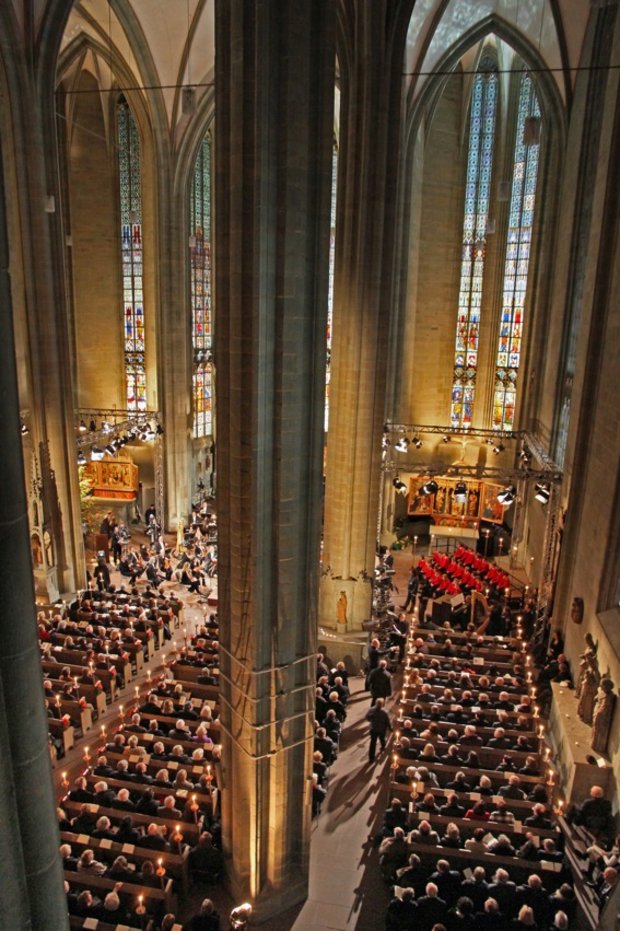 Blick von der Empore. Die Scheinwerfer für die Ausleuchtung hat der WDR in behutsamster Weise an den Pfeilern befestigt.