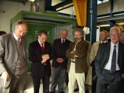 Wohlwollender Förderer des Grünsandsteinmuseums war die NRW-Stiftung "Natur-Heimat-Kultur". Am 08. Mai 2008 war sie zu Gast in der Bauhütte. Herzlich willkommen war der Präsident der Stiftung, Staatsminister a.D. Franz-Josef Kniola, sowie die Mitglieder des Stiftungsrates, der Soester Bürgermeister Dr. Eckhard Ruthemeyer und alle erschienenen Vertreter aus dem öffentlichen Leben. Präsident Franz-Josef Kniola erinnerte an den Aufbau der Bauhütte und ihren Werdegang an der Restaurierungsbaustelle St. Maria zur Wiese sowie an die Entstehung der Meisterschule vor 10 Jahren. Die positiven Entwicklungen haben schließlich zur maßgeblichen Förderung des Soester Grünsandstein-Museums durch die Stiftung geführt. Nach der Begrüßung begaben sich die Gäste in die Werkhalle der Bauhütte, wo Stiftungs-Präsident Kniola zwei Urkunden überreichte.