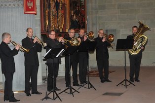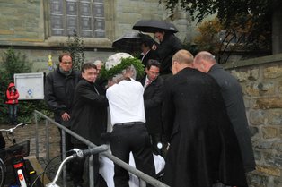 | Auszug der Steinkrone durch die Reihen aus der Kirche hinaus zum Transport auf das Turmgerüst, dazu aus "Auszug aus Ägypten /G.F. Händel" | Bläser |