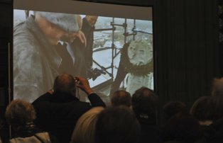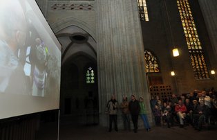 | Katapultieren der Steinkrone auf die Turmspitze | Filmübertragung in die Kirche |