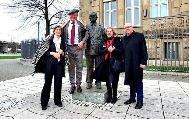 Priska Maria Prigl; Jürgen Prigl; Johannes Rau (in Bronze); Dr. Birgitta Ringbeck, amtierende Vorsitzende des Westf. Dombauvereins; Heinz-Helmut Piel, vormaliger Vorsitzender.