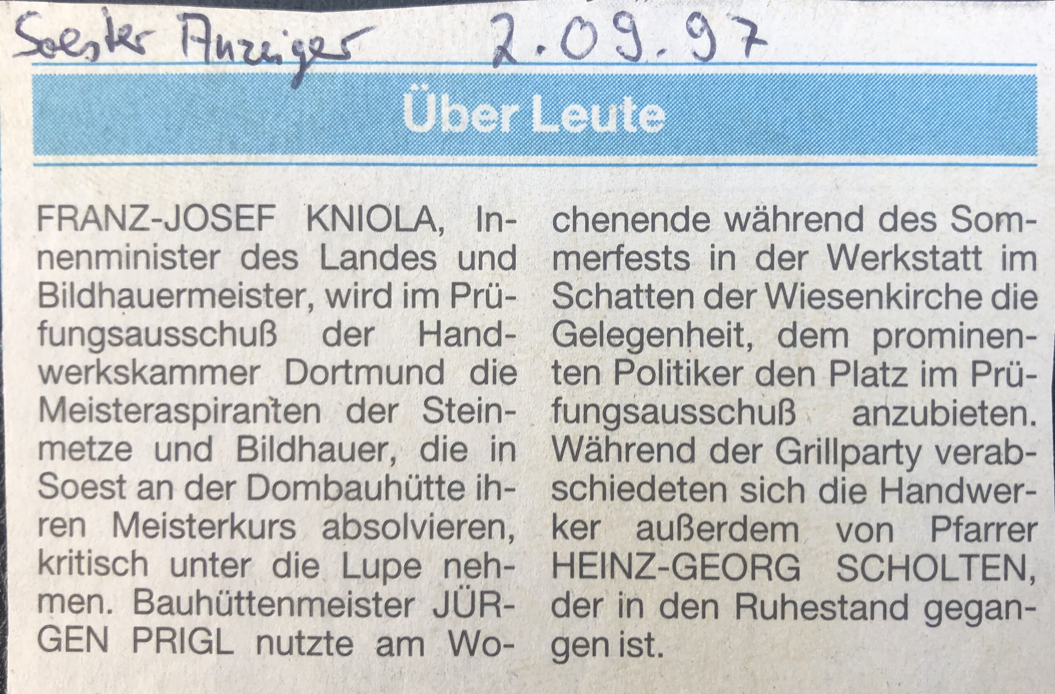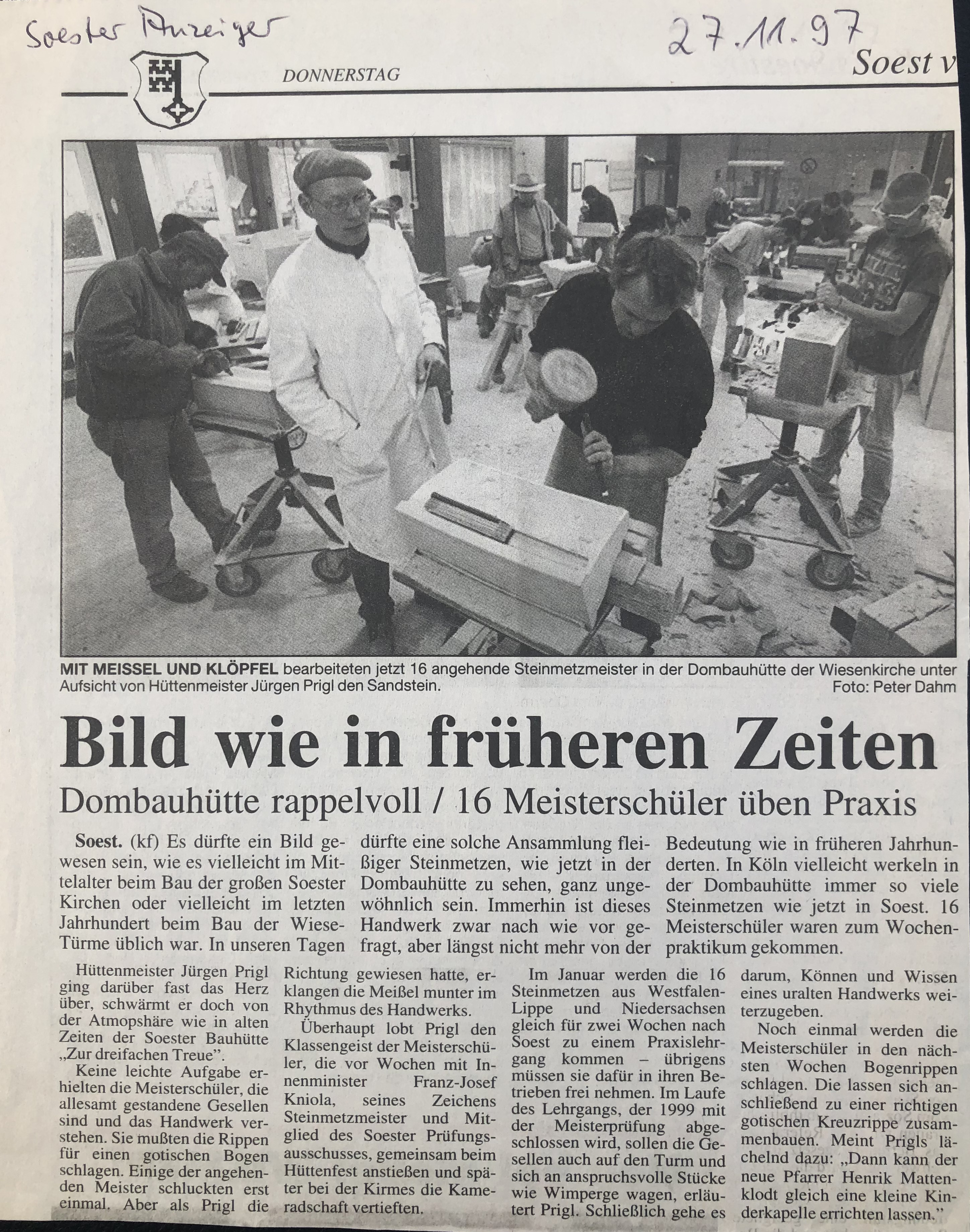 In der Dombauhütte an der Wiesenkirche in Soest wurde 1997 ein Gesprächskreis zum Thema Kultur und Bildung speziell im Handwerk der Steinmetze eröffnet. Ab 1998 wurde diese „Soester Runde“ international und verdoppelte sich jeweils in den Folgejahren.