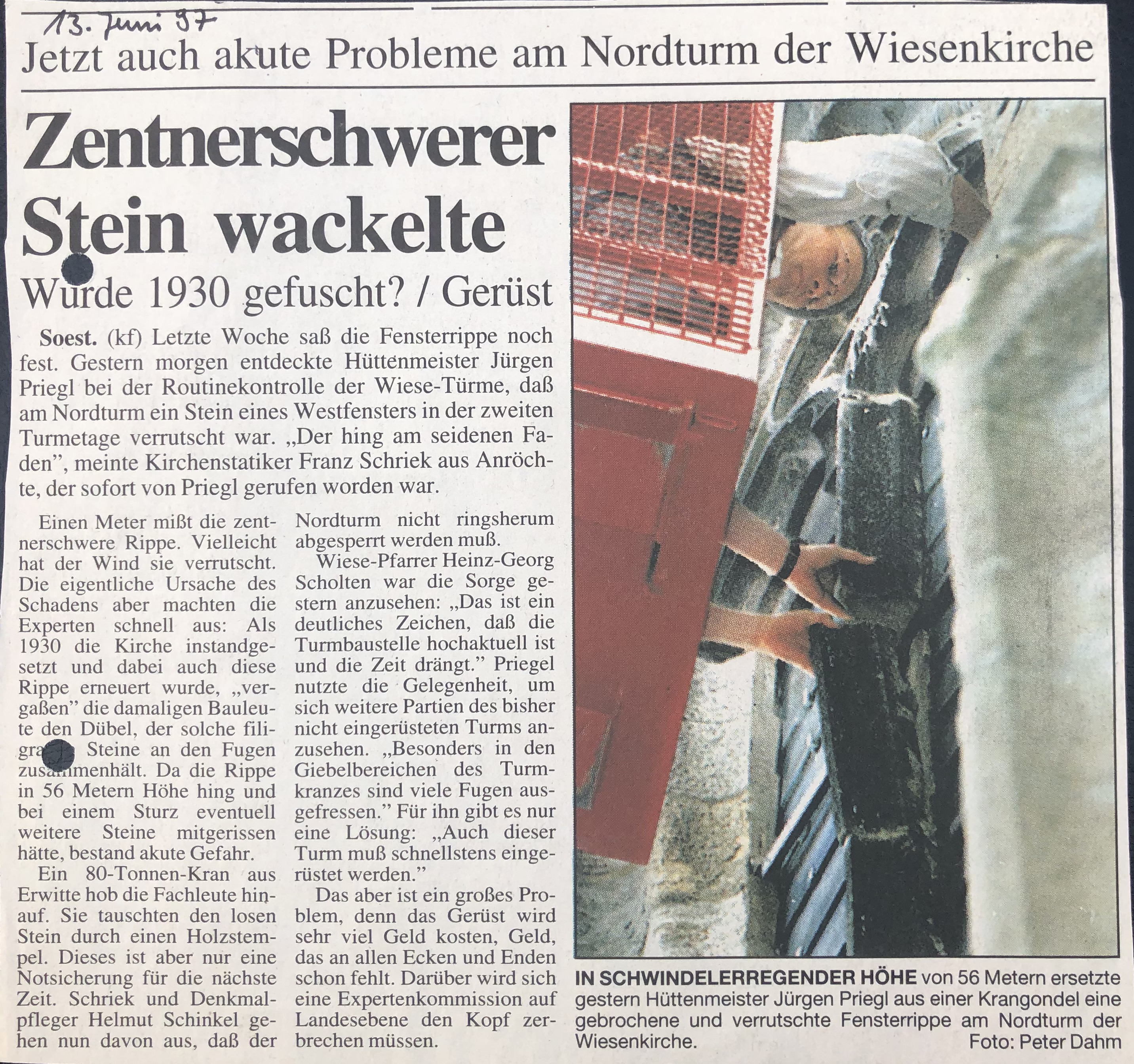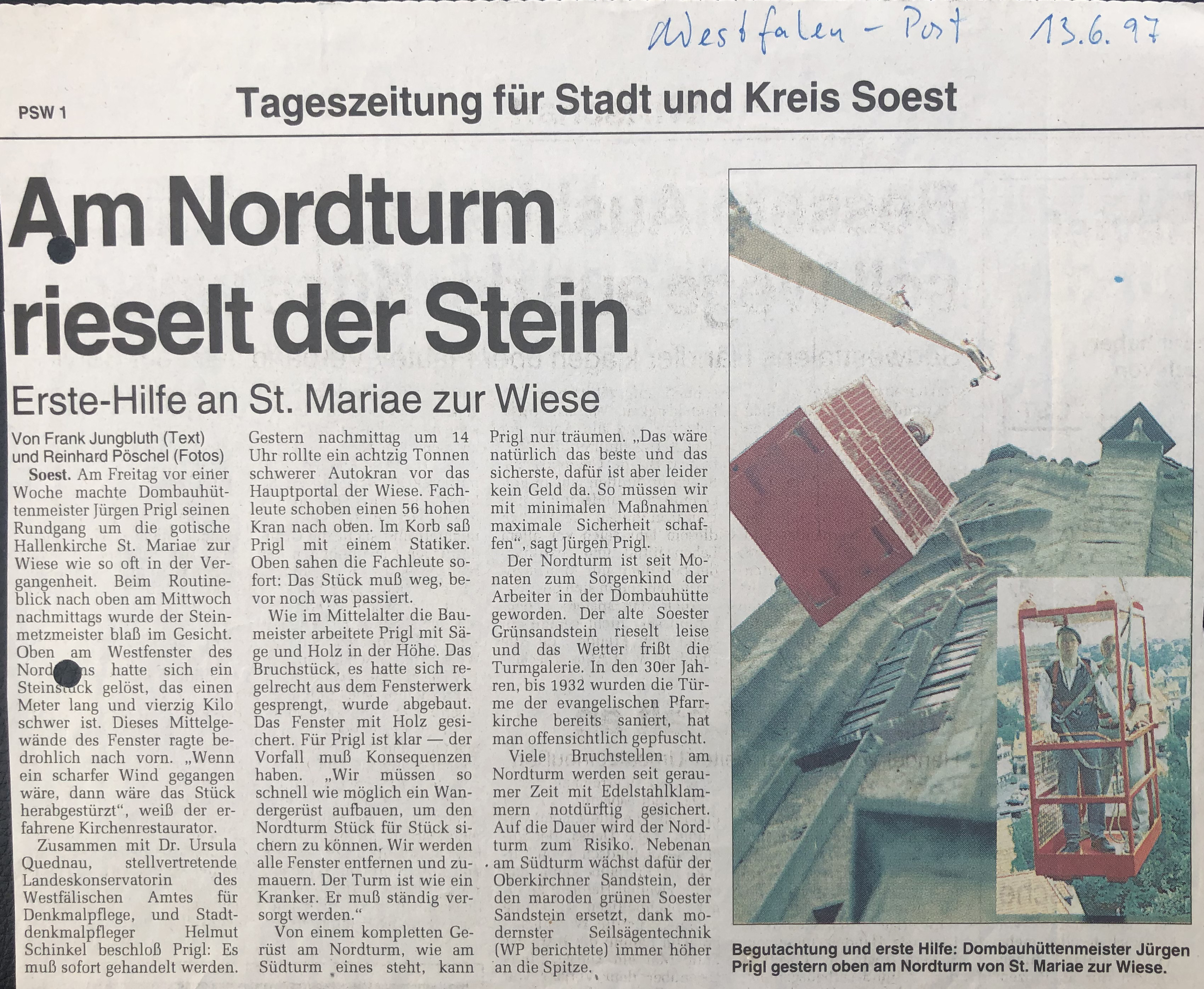 In einem Festakt am 06.11.1999 wurde der Grundstein zur Restaurierung des Nordturms gelegt. Hauptförderer ist das Land NRW, der damalige Ministerpräsident Wolfgang Clement nahm persönlich an der Feier teil.